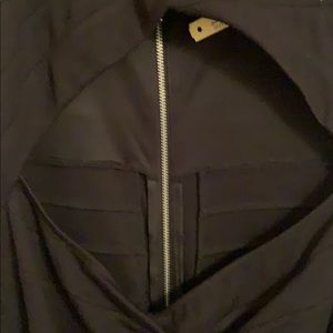 Only worn once to a wedding. Front cutout to expose the midsection, long zipper in back. Zipper goes completely down the back.