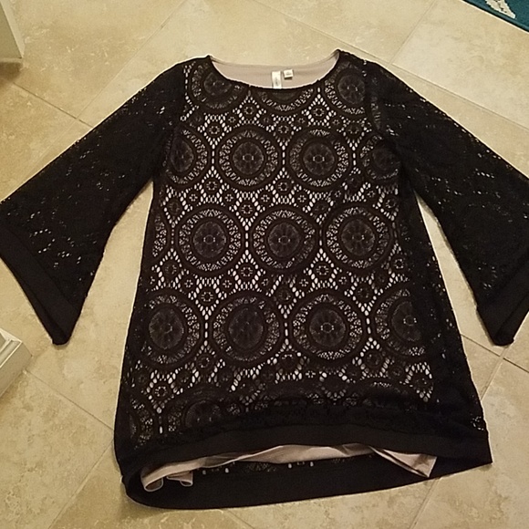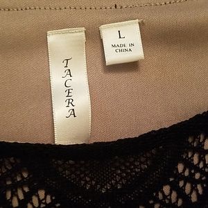 Black lace with tan lining. Good condition. No wear marks.
