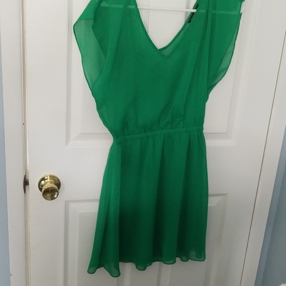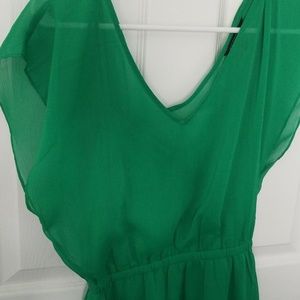Flowy green dress, sheer upper with tank top liner. Worn 2 times, like new.