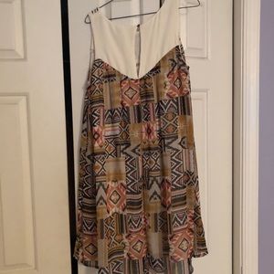 Very cute dress! Size medium Self: 100% Polyester Contrast: 100% rayon Lining: 100% Polyester Smoke free home