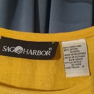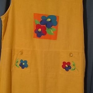 Pretty yellow/gold summer dress with pockets, floral pattern on front and side buttons. Wear it for a summer get together, church or just because. Excellent used condition. From a smoke free home.