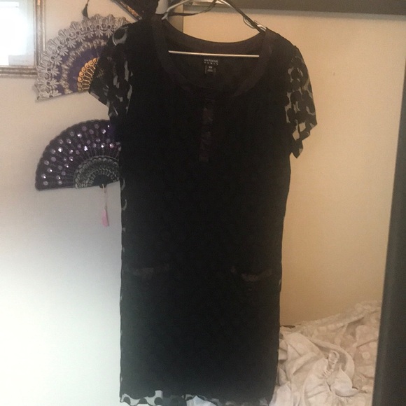 Sheer polka dot over A line tunic 2 front pockets trimmed in satin Super cute