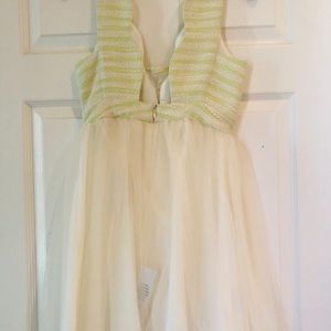 Cream cocktail dress with lime green stripes on top. Very subtle stripes. Never worn!