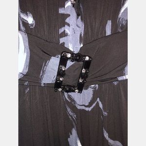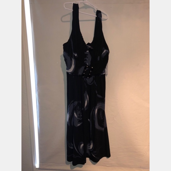 Brand new floral printed dress. Detailed belt. The flowers are a blue/purple color. Falls right above the knee.