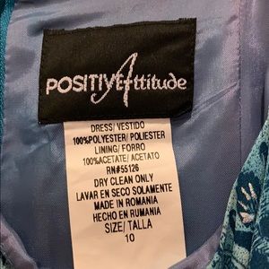 Positive Attitude blue shimmer evening dress. Dress is lined with a small slit in back.