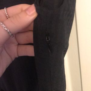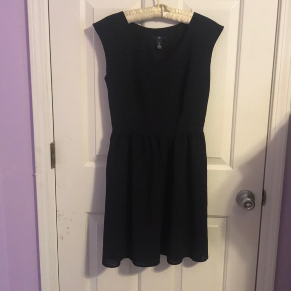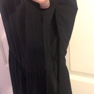 Black dress, flows, zips up on the left side.