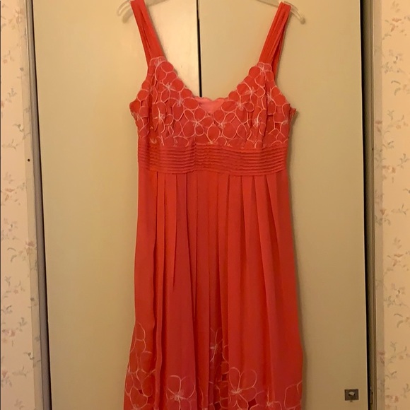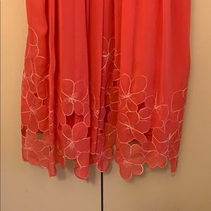Sundress coral color with stitching details and cut out design at hem, beautiful