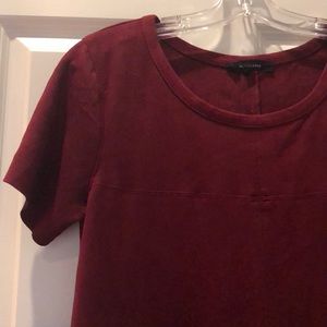 Maroon color, stitching for cute details. 90% polyester, 10% spandex