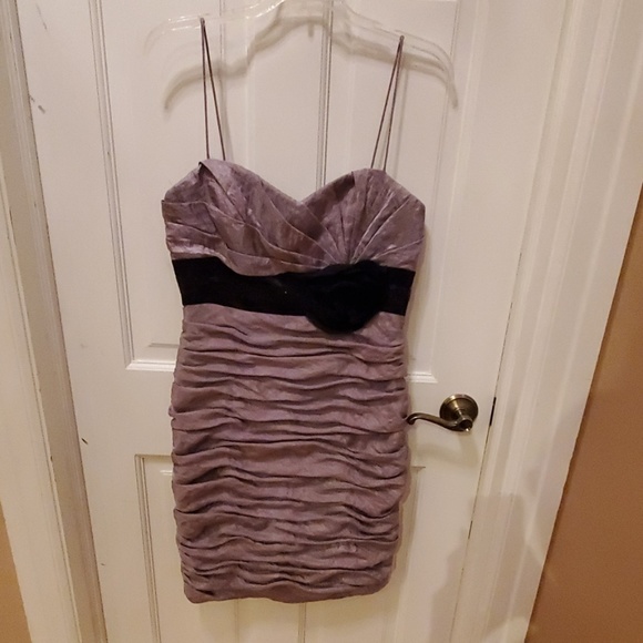 Mini crunched lavender dress with ribbon spaghetti straps beautifully fitted