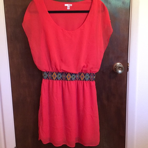Southwestern look. Band in middle is part of dress; cannot be removed. Very cute to wear for a summer evening or for family photos!
