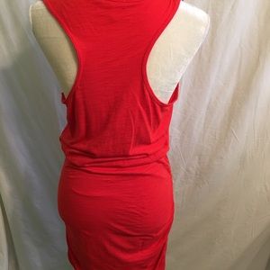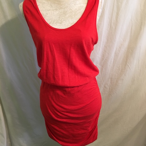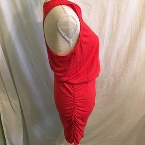 Scarlet bright red women’s dress with tight skirt and loose blouse, size S