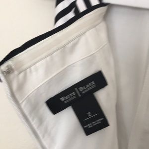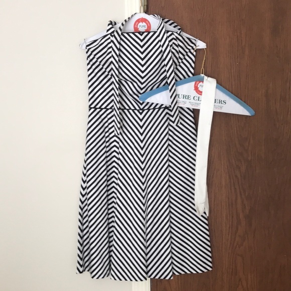 WHBM size 2 adorable striped dress has side stays and rubberized grips around bust/back. Ties around neck and has satin sash. Worn once. Freshly dry cleaned. Nice and crisp-ready to wear