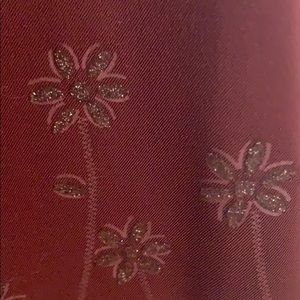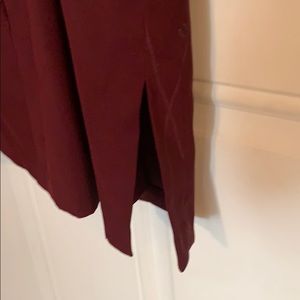 Maroon with a touch of silver detailing little flowers at bottom of dress. Worn a few times but in perfect condition. Slight slits on both sides of the dress as detailed in picture.