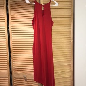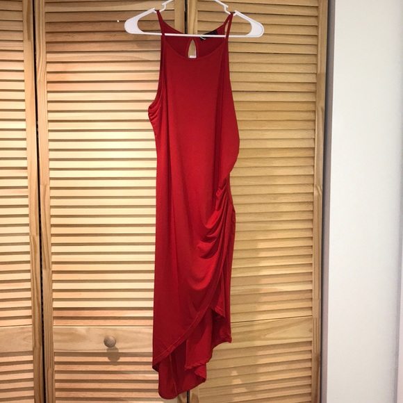 Super comfortable red dress with side ruching on one side to show a little leg.