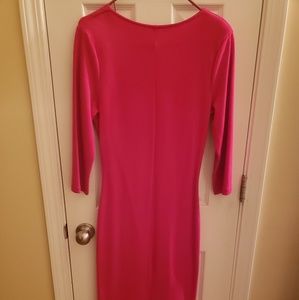 Size large below the knee bodycon dress with 3/4 sleeves. Fits like medium