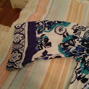 Very loose flowing cotton comfy dress with belle sleeves beautiful blues, white , turquoise colors
