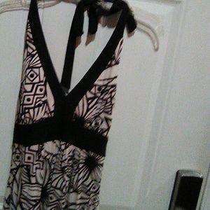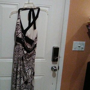 Long brown and cream dress Hawaiian flowers silky dress cute for summer size 9/10 cute backless neck straps