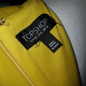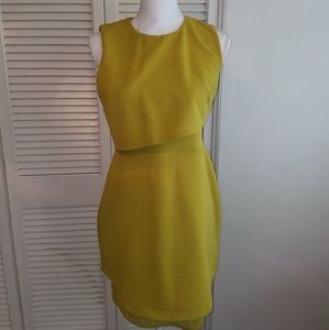 Sleeveless mustard color dress. Looks like it's a 2 piece set.