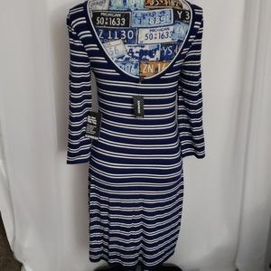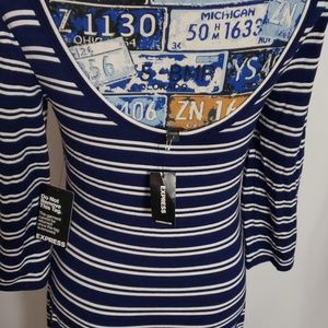 Express Navy & white striped dress with low scoop back and 3/4 sleeves