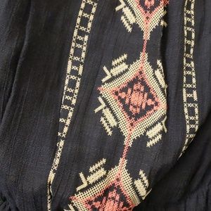 Strapless linen dress. Navy with coral and beige design. Super cute. Great condition