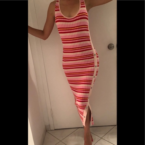 Colorful maxi dress left side with buttons super nice and soft for breezy evenings!