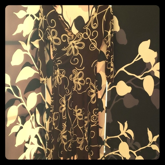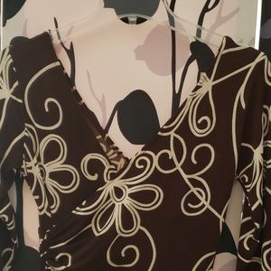 Chocolate brown with cream floral print. Mid sleeve.