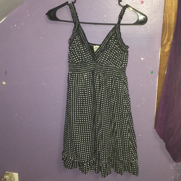 Cute polka dotted dress it is a stretchy material but it super short would look cute with leggings. It was bought in 2009 but hadn’t really been worn since. Size M but would fit a S or XS