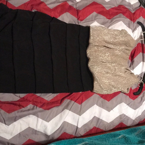 It’s a gold with black dress