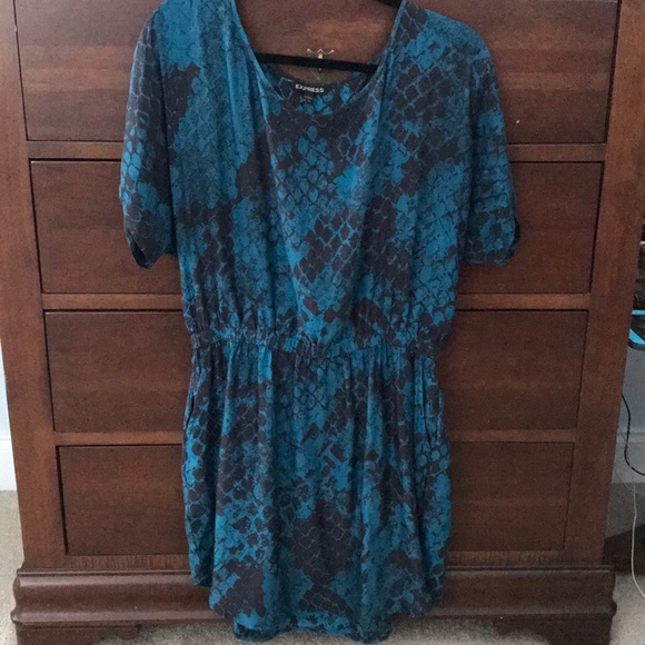 Express, size L, slouch dress with pockets, very soft and comfy. Size L but fits loose. Bluish green and black