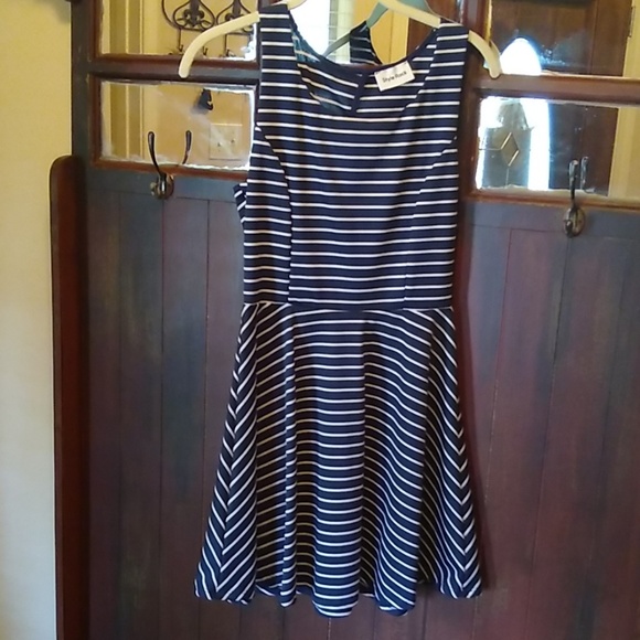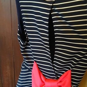 Cute blue and white summer dress with pink bow on the back. Open back