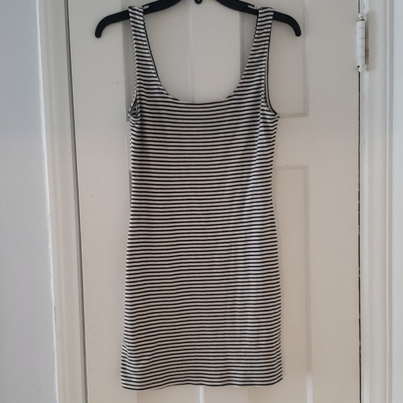 Navy and cream striped mini dress