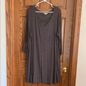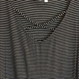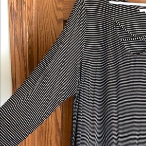 Black/white striped, midi, 3/4 sleeve, Ray one/spandex. Criss Cross neck.