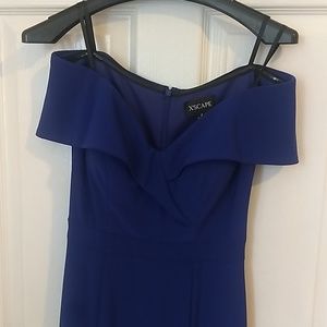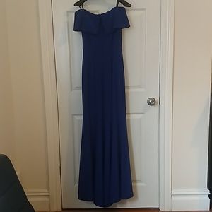 Blue off shoulder long dress. Slit down the left side (slit is about 27 inches long). Worn once