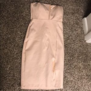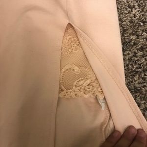 Strapless ! Worn one time for few hours light pink ! Has lace on bottom by thigh and some on top ! Good material great condition!