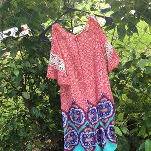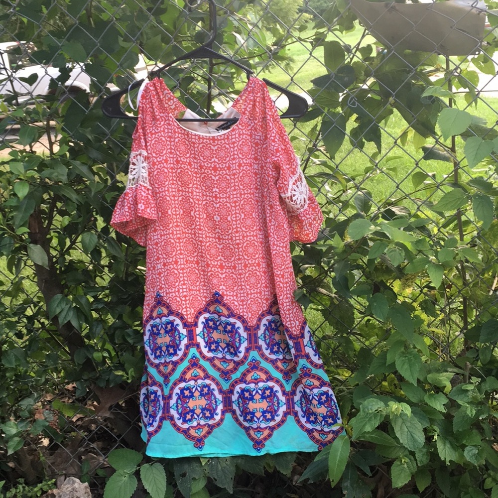 Really colorful has a small hole easy stitch I haven’t had time to stitch it yet so I’m selling it I never were it anyway open shoulder
