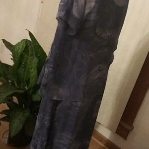 2 pc dress, dusty blue designed with different hues of blue in both jacket and dress. Dress is A-line. , sleeveless and fully lined. The jacket is sheer & has a sequined floral design. 100% SIlk. Beautiful dress, make me an offer!! 😊