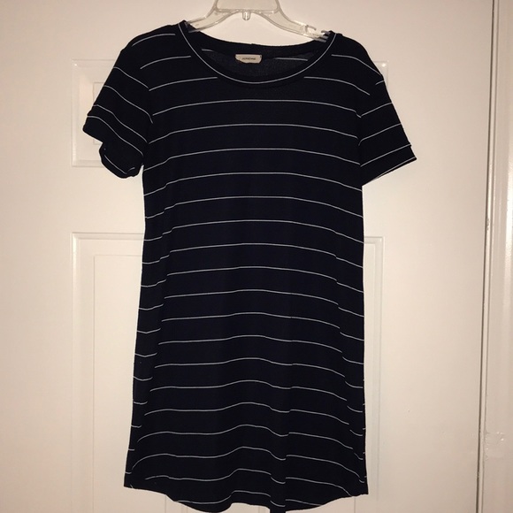 Perfect little throw on! Navy and white stripe cotton/poly dress