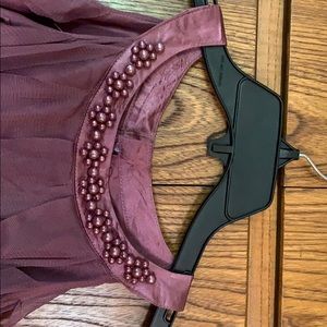 Beautiful purple dress with vertical ruffles that make it look darling on. My daughter only wore it two times before she outgrew it so it is practically brand new.