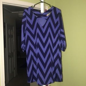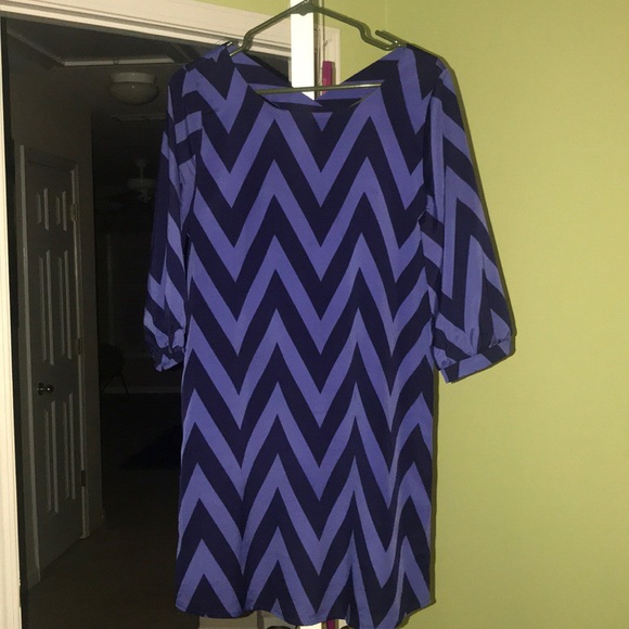 Quarter sleeve dress from lizard thicket boutique, chevron pattern, criss cross on back, only worn 3 times, navy & purple