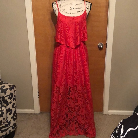 Melon lace overlay spaghetti strap