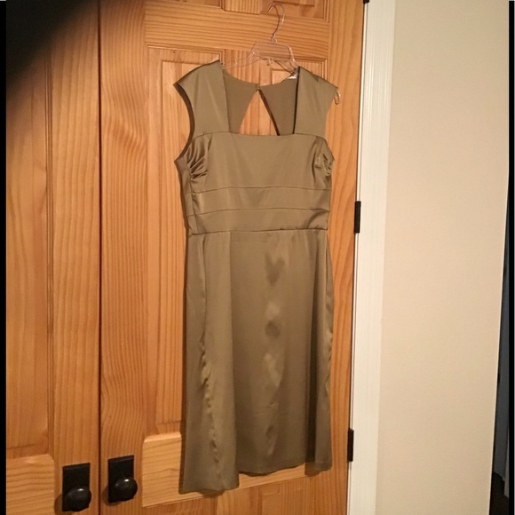 Very nice dress worn once to a wedding.lined silky fabric. Says 14 but fits like a 12