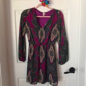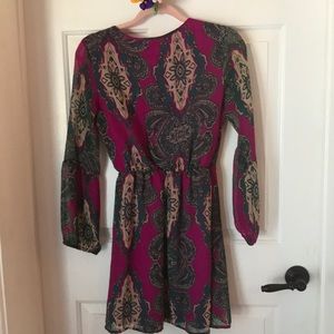 Absolutely gorgeous long sleeve dress perfect for fall. Can be worn to the office or for an evening out. Dress is lined and arms are sheer. Total length from shoulder to hem is 33”.