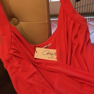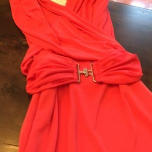 Amy Matto New York coral wrap dress silver hard ware beautiful fabric and slenderizing!