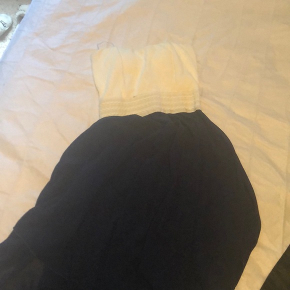 Sleeveless dress with white top and navy skirt