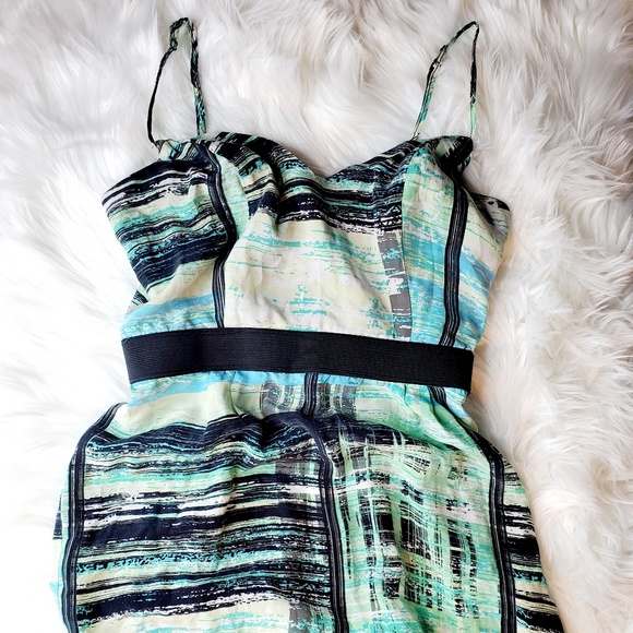 Spaghetti strap Mini multicolored dress with spandex waist and back