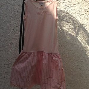 Pink cotton stripes on the skirt solid pink on the top summer dress
