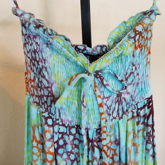 Girls size. 6 inch gathered/elastic bust. Bono look. Asymmetrical hem.