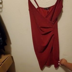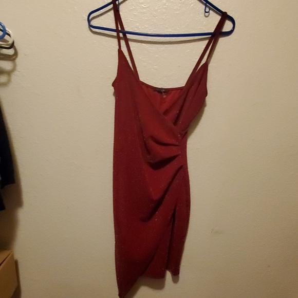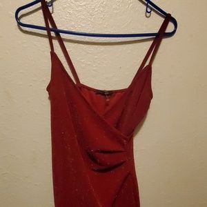 Red, strapless, shimmer w slit on bottom, worn one times-news years eve dress