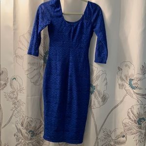 Beautiful navy blue midi dress Size Small I’m 5’3” See through 3/4 sleeves Lining on the inside