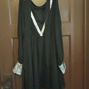 Beautiful black dress with silver neck open long sleeve with gold bottom on sleeves, open back, used ones great condition